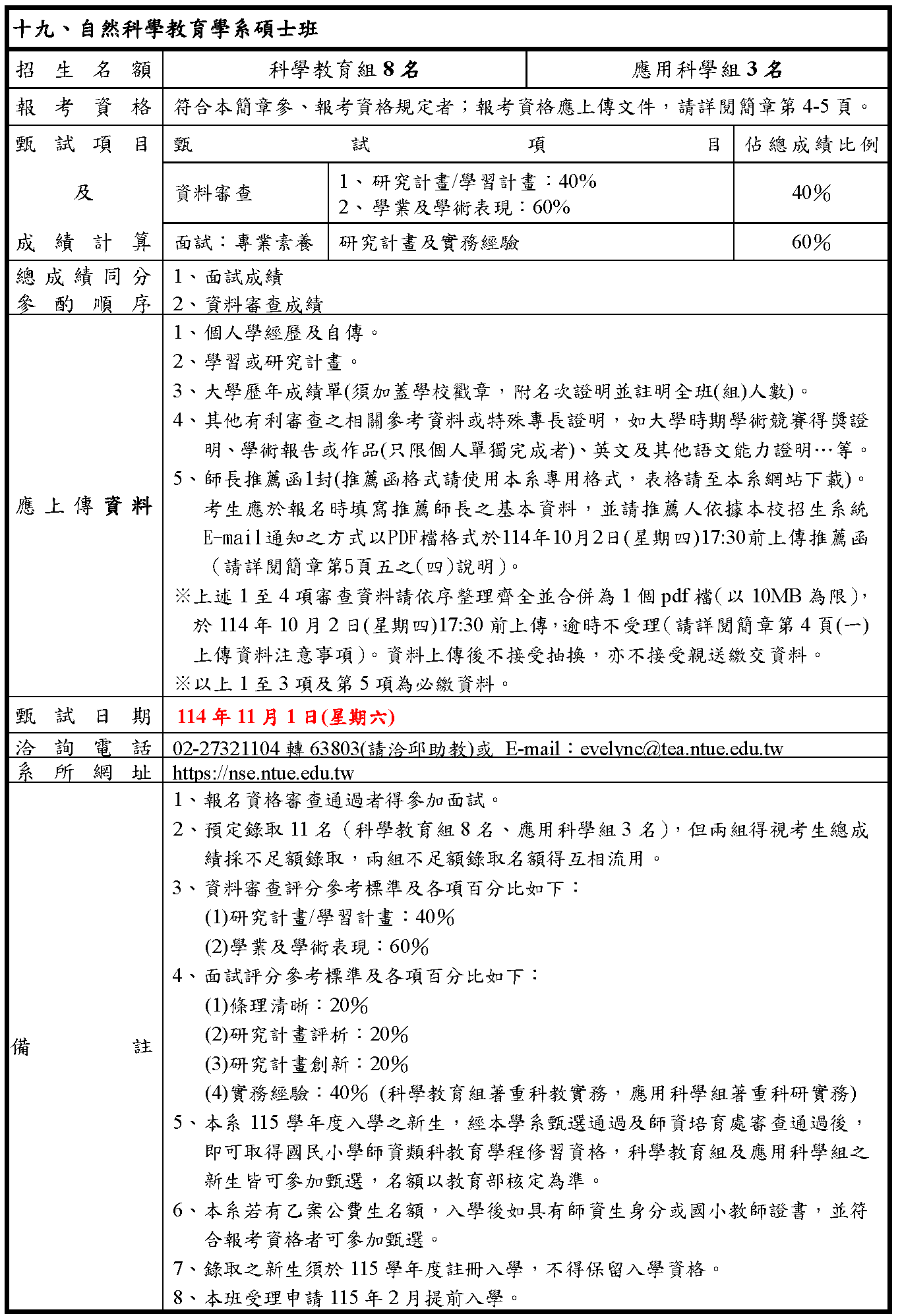115學年度碩士班甄試入學招生簡章